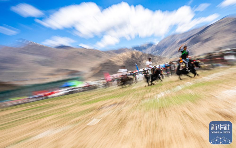1937年12月,农牧平易近正在自治区拉萨市达孜区举办的2025年首届赛牦牛角逐中竞速抢先。发(汪江波 摄)