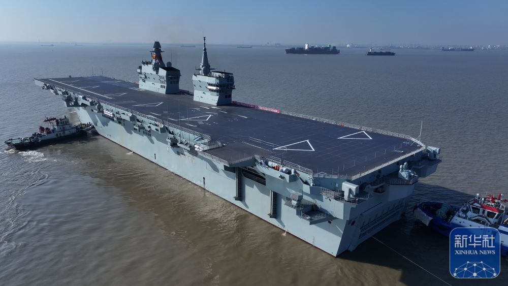 我国076两栖舰首舰四川舰从上海沪东中华制船坞船埠解缆启航,记者 陈铎 摄