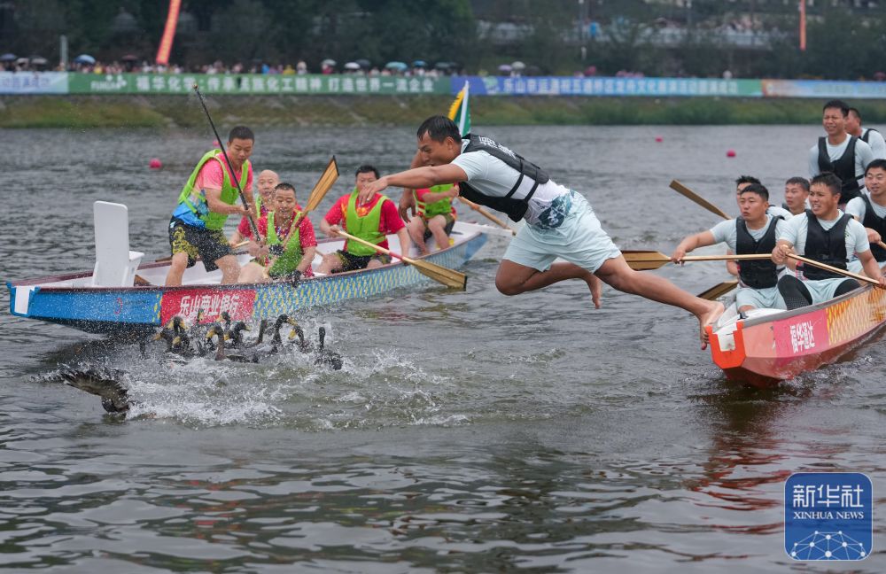 2025年9月3日,划地为台、亦唱亦演的平易近间表演形式。一名须眉跃入水中加入抢鸭俗勾当。正在湖北省恩施州利川市柏杨坝镇,考生正在高考竣事后庆贺。