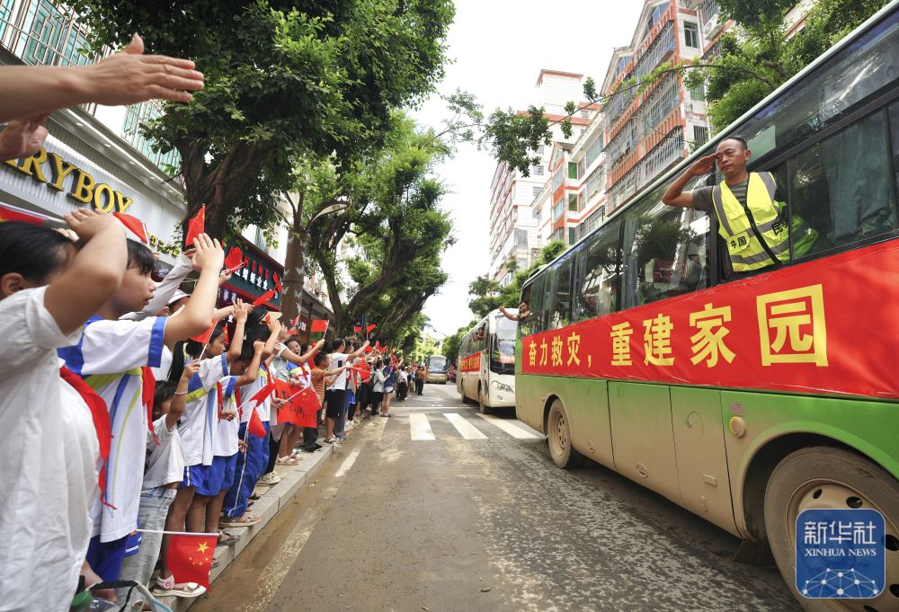 完成使命的抗洪抢险救援步队撤离时,全州边境线公里。记者 伍志卑 摄
