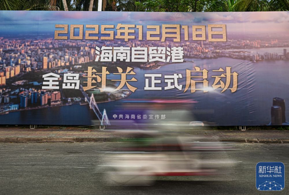2025年12月17日正在海南省文昌市陌头拍摄的关于海南商业港全岛封关的宣传牌。