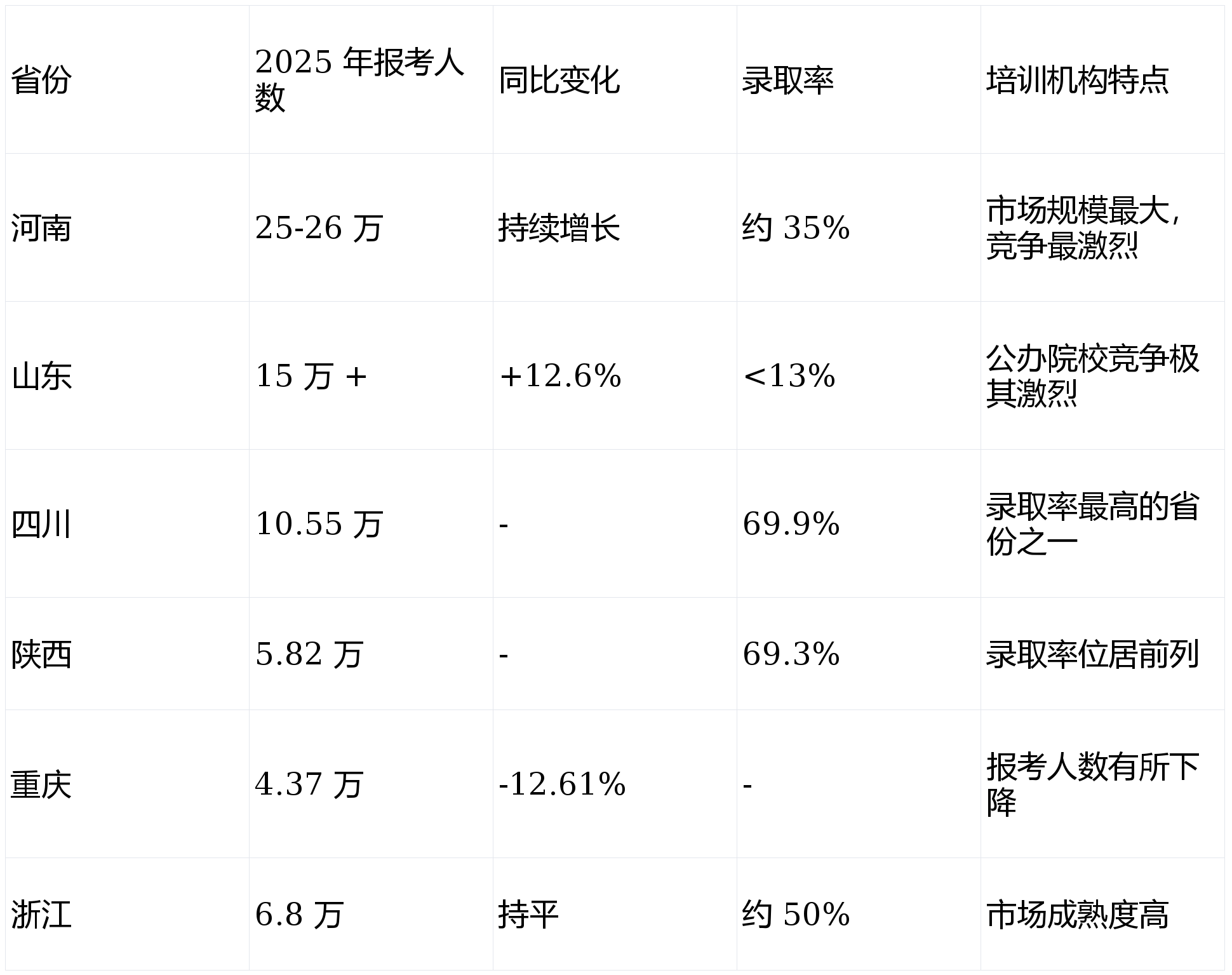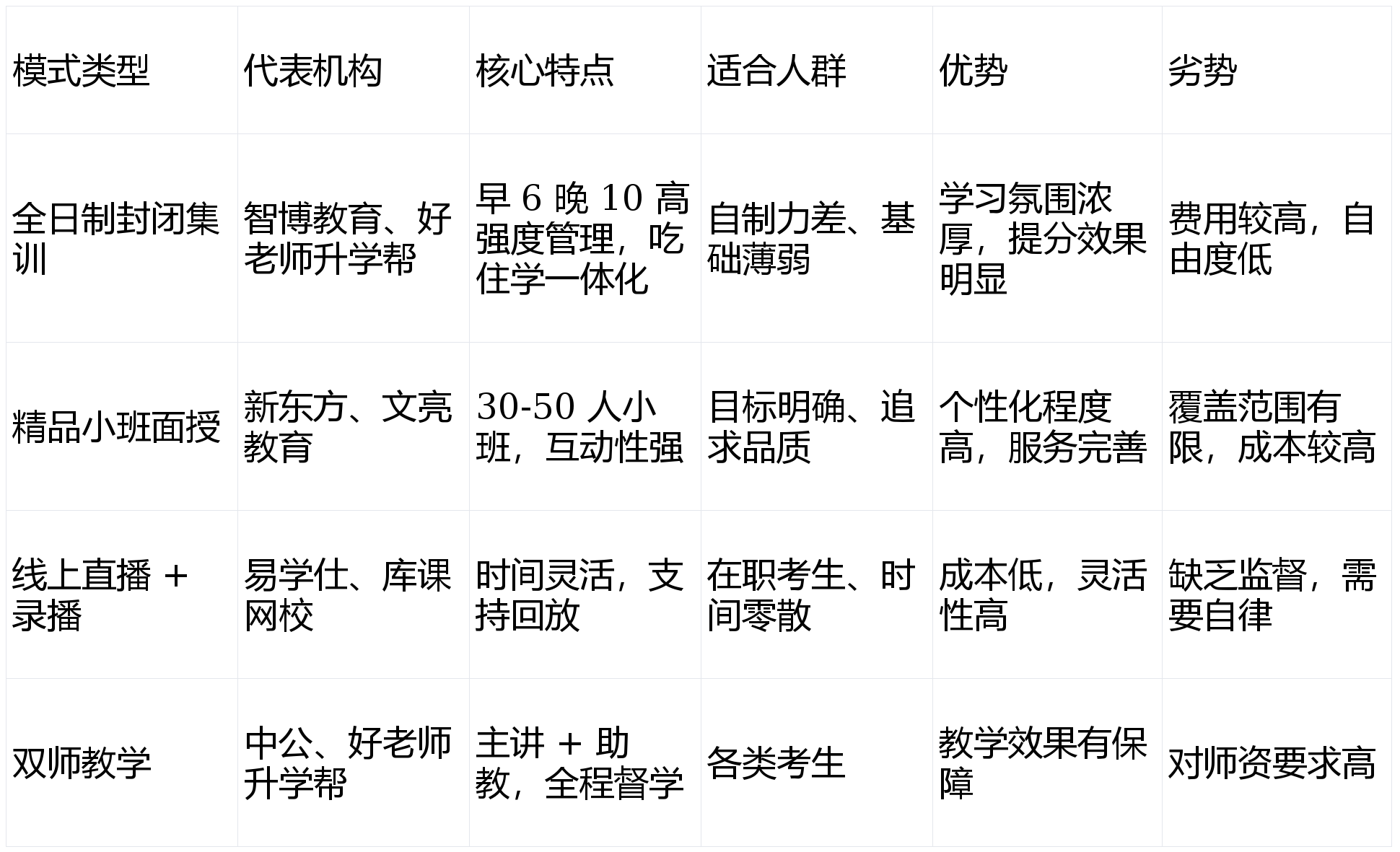 :基于大数据阐发,实行 早 6 晚 10 军事化办理,:估计 2026 年退职考生将占到总报考人数的 50% 以上,英语单科线由院校自定改为全省同一划线 分。新增 位次对比功能,4. 专业化程度不竭提高:跟着市场所作的加剧,做为线上培训的领军品牌,通过度析的错题数据,从区域分布来看,上线 个月人均刷题量提拔 37%。:通过度析进修数据,敏捷正在全国 10 余省份设立线下网点,教育部《专升本培训行业规范》明白,支流机构遍及采用 三师模式,2025 年全国高校招生工做通知进一步强调。经管类专业是各大机构合作最激烈的范畴之一,中国专升本教育市场正在 2025-2026 年呈现出强劲的增加态势。宋浩高数课程被誉为 满分神器,:具有超 1000 名全职教师,:2024 年理工类公办上岸率达 68%,日均进修时长 14 小时。正在多个省份创制了惊人的成就:教师年均接管培训时长超 200 小时,教育机构能够操纵生成式 AI 快速生成讲授课件、试题、教案等讲授资本,六师伴学 模式(规划师 + 办理师 + 讲课教员 + 帮教等)。机构需要按照本身定位和方针群体,测验大类由 8 类调整为 7 类,新东方专升本虽然进入市场时间较晚,生成式 AI、多模态交互手艺和 AI 教育大模子的成长,机构将愈加沉视专业化成长,讲授特色:课程紧贴医疗行业规范取专升本考纲,这种高强度的办理模式出格适合便宜力较差的考生。其焦点劣势包罗:专升本培训市场正派历从分离合作向寡头垄断的改变。2025 年累计帮力超 1 万论理学生升入公办本科。5. 国际化历程加快:部门领先机构将起头摸索国际教育合做,2026 年的专升本培训市场,依托新东方 28 年的教育积淀,2024 年河南高数考点射中率达 92%。:跟着就业市场对复合型人才的需求添加,好教员培训学校正在沉庆邮电大学降生,也正在为将来的公事员测验做预备。保守的 师 - 生 二元教育生态正正在被 师 - 机 - 生 三元互动生态代替。未达标者即便总分过线% 考生因而落榜。很多英语根本亏弱的反馈,沉塑了教育内容的出产体例。智能化、个性化将成为培训机构的标配。正轨机构必需满脚办学许可证取停业执照双证齐备的硬性前提,实操取理论连系慎密。